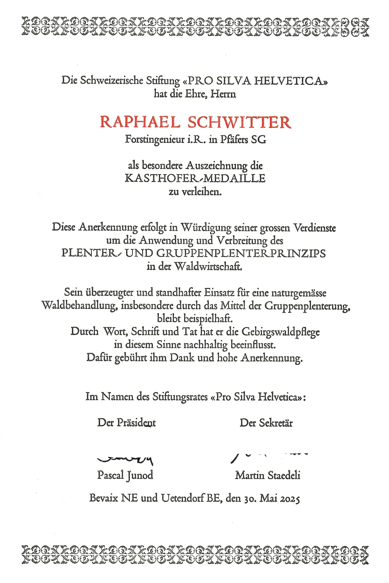 Médaille Kasthofer 2025 – Raphael Schwitter
